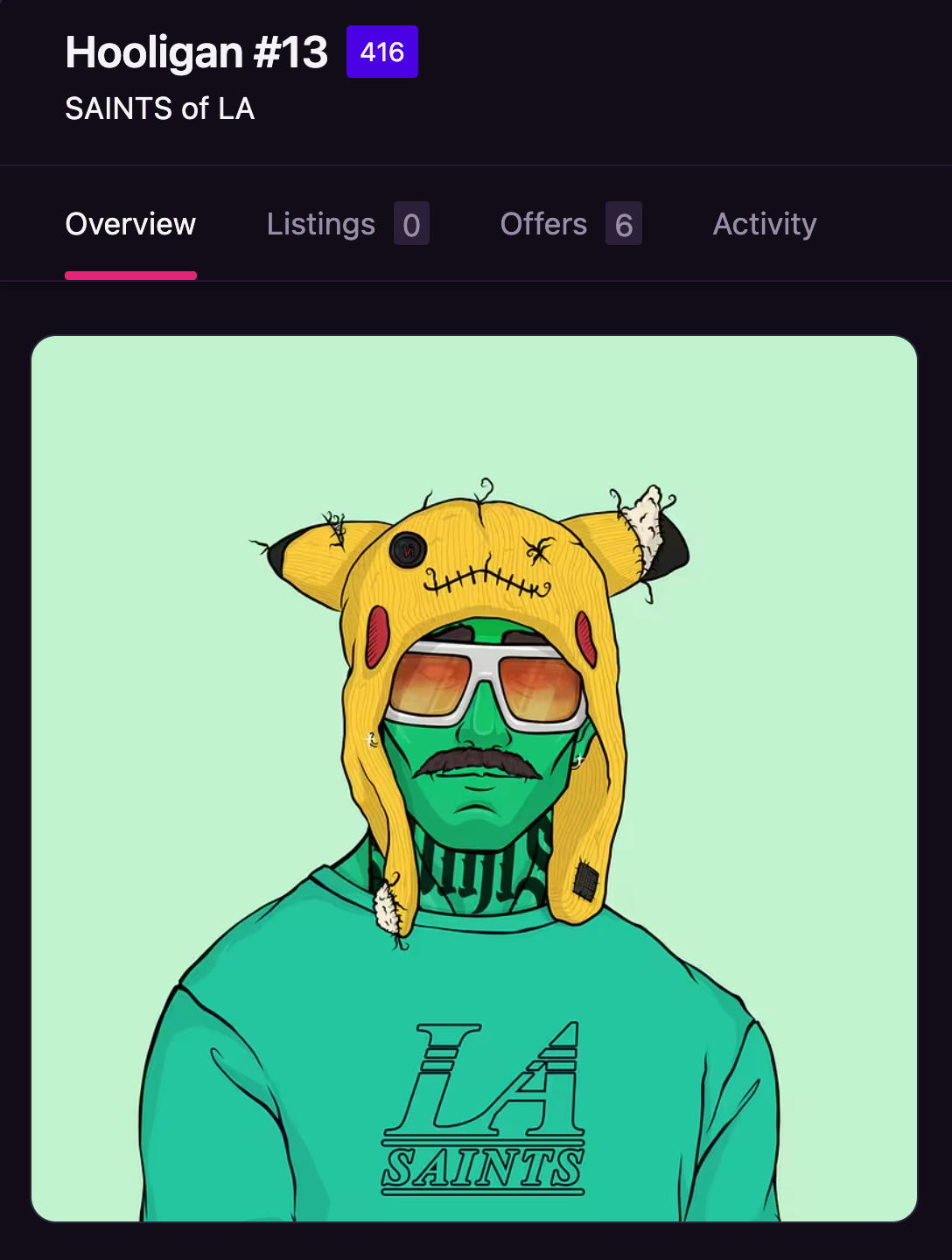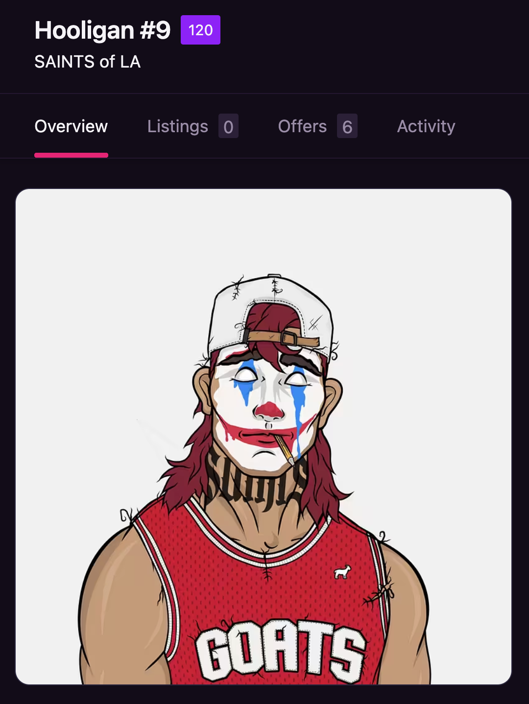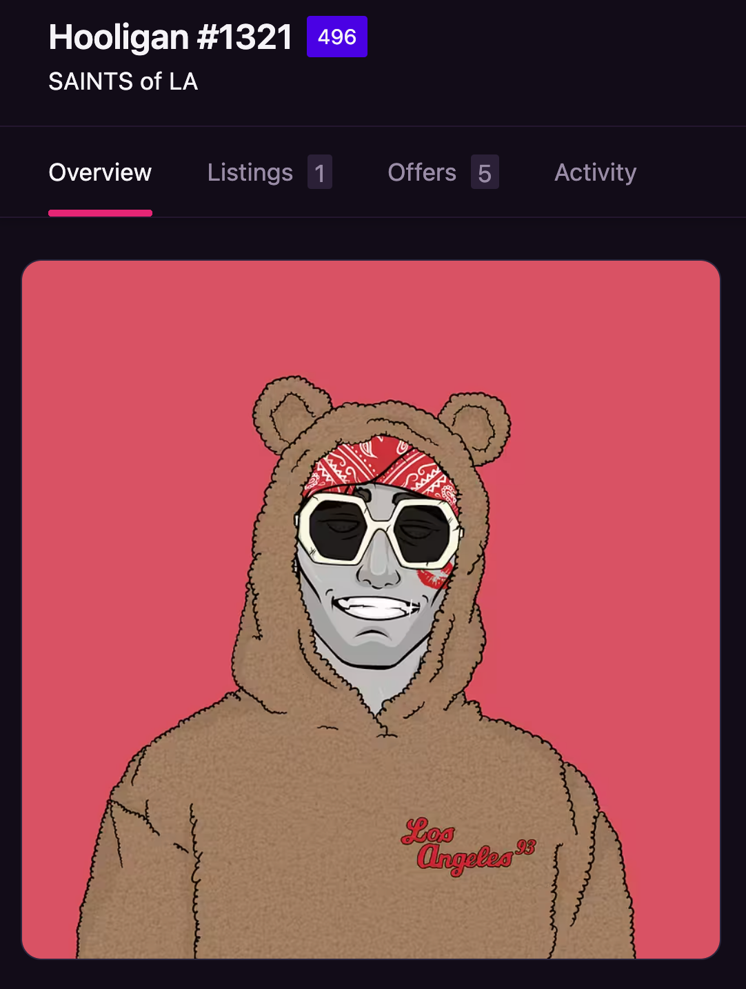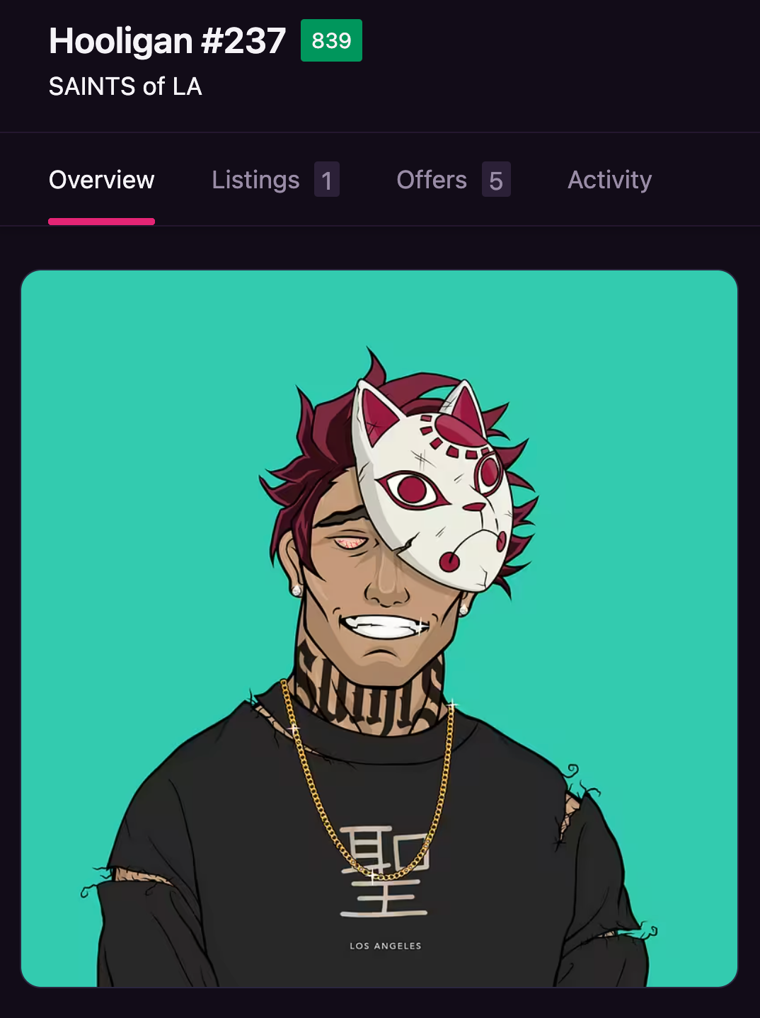 At Saints of LA, we're not just a project, we're a movement, a community, and a lifestyle. Our journey is about alot more than just NFTs; it's about capturing the spirit of the vibrant underground culture and translating it into a digital space. We are carefully developing apparel, events and games IRL.